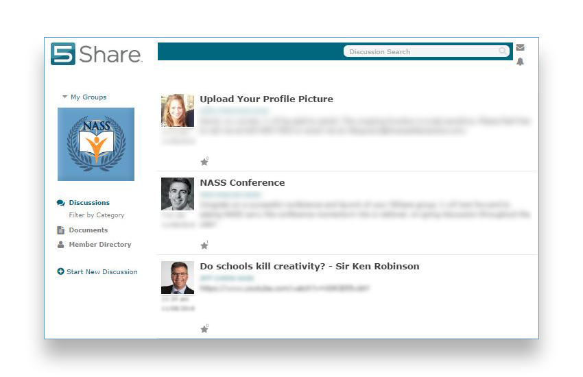 Members generally belong to more than one Collaboration group. To keep things organized, 5Share was designed with several features to help manage and view news feeds and notifications.