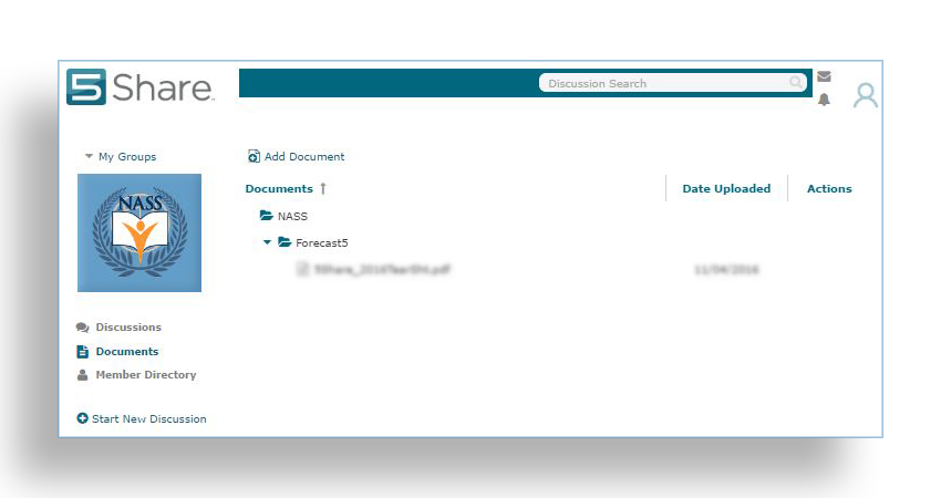 5Share groups dialogue on a number of topics related to their field of work. They can also share data and files, as well as, conduct group polls and surveys.